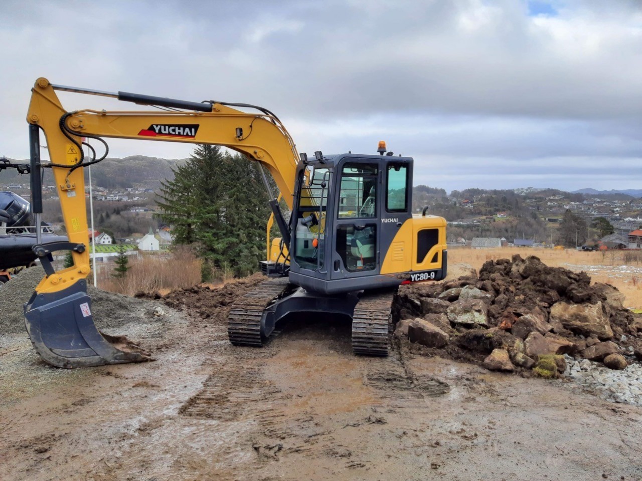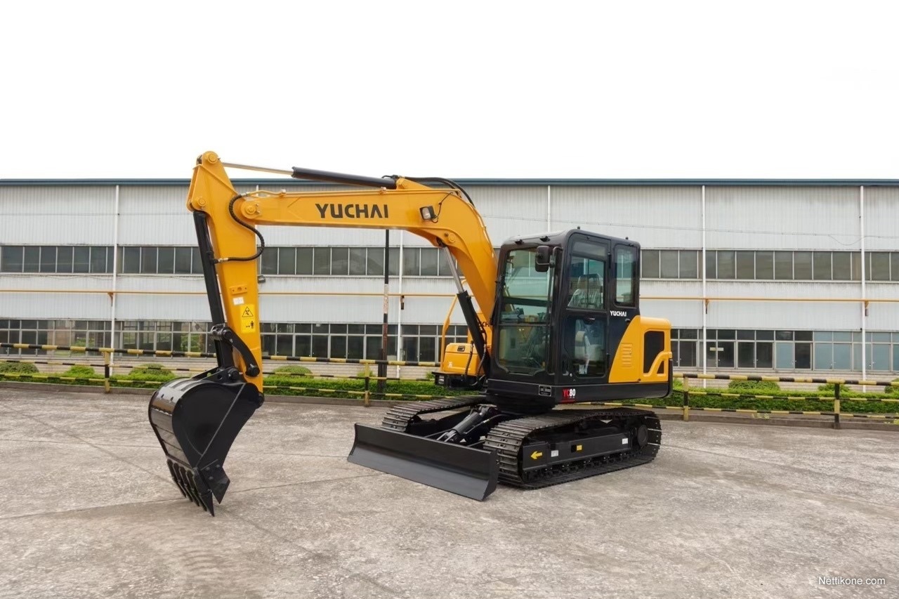 Yuchai YC80-9 Exc / Motor YANMAR 59,5Hp / Peso Operativo 7800Kgs. / Oruga Metalica / Línea Auxiliar para Accesorios / Engache rapido de Balde / Cap. Balde 0.26m3 / Prof. De Excavación 4022mm / Cabina Cerrada – A/A / Medidas 6215x2260x2705mm